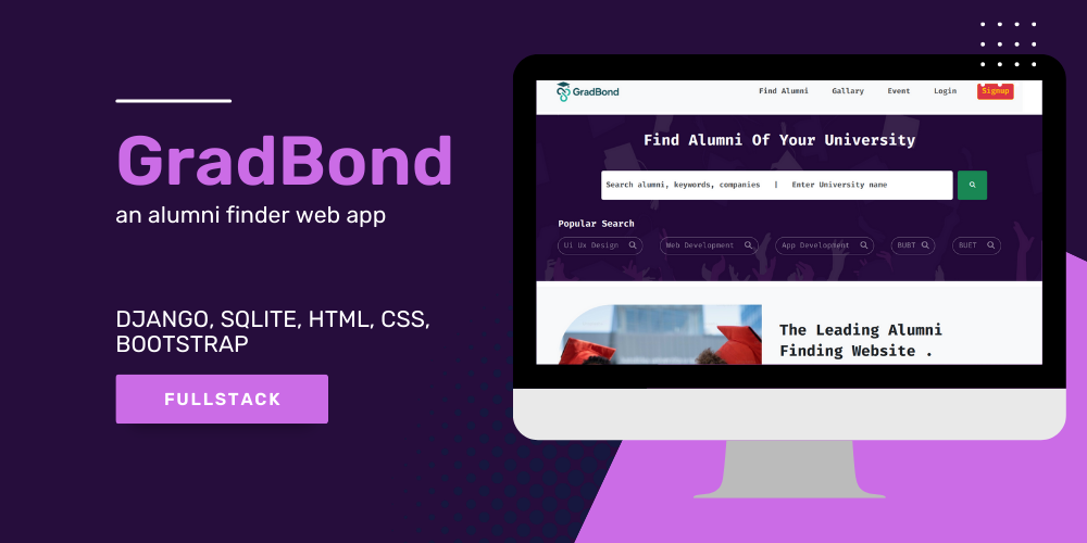 GradBond is a web-based application that connects alumni and current students of an institute. Where I worked the full-stack part.